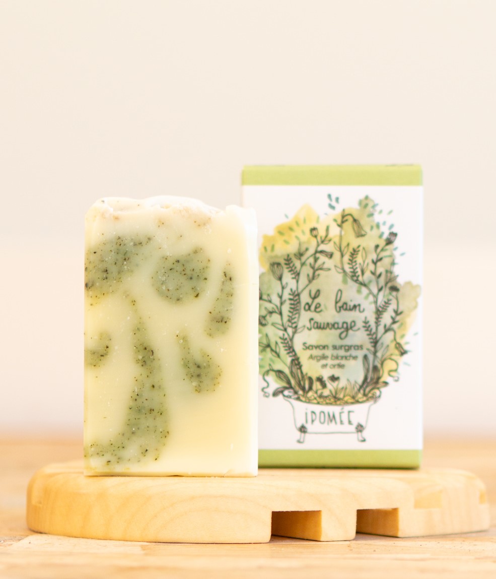 La durabilité de tous les savons Ipomée est irréprochable. Celui-ci, avec son parfum à l’ortie, nous ramène clairement à la nature. L’odeur dure longtemps et se laver avec est comme se rouler dans l’herbe.